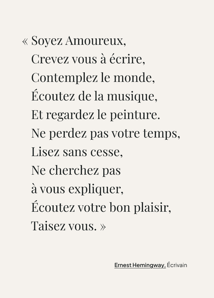 « Pour écrire un seul vers, il faut avoir vu beaucoup de villes, d’hommes et de choses, il faut connaître les animaux… Il faut pouvoir repenser à des jours d’enfance dont le mystère ne s’est pas encore éclairci… et il ne suffit même pas de repenser à tout cela… Il faut encore avoir été auprès de mourants… avec la fenêtre ouverte… et il ne suffit pas d’avoir des souvenirs… il faut savoir les oublier quand ils sont nombreux … et il faut avoir la grande patience d’attendre qu’ils reviennent… car les souvenirs eux mêmes ne sont pas encore cela. Ce n’est que lorsqu’ils deviennent en nous sang, regard, geste… lorsqu’ils n’ont plus de nom et ne se distinguent plus de nous, ce n’est qu’alors qu’il peut arriver qu’en une heure très rare, du milieu d’eux , se lève le premier mot d’un vers.»